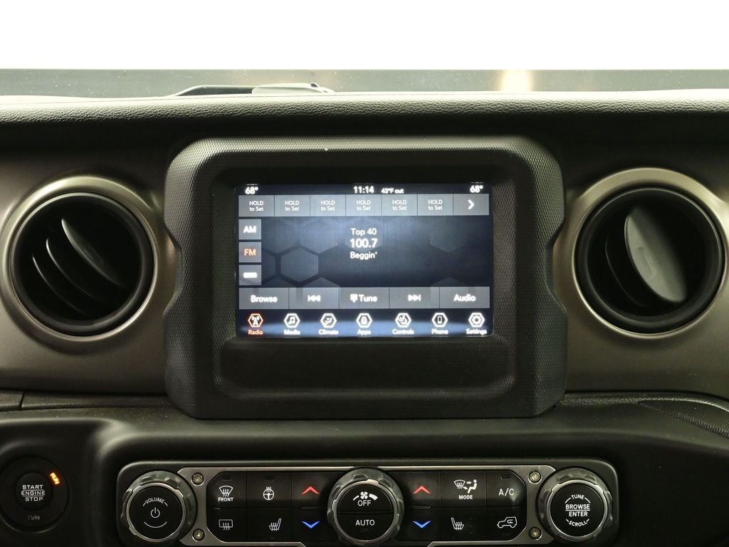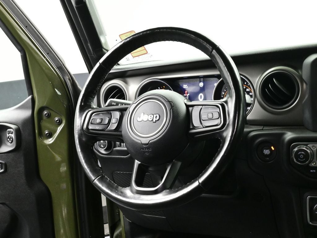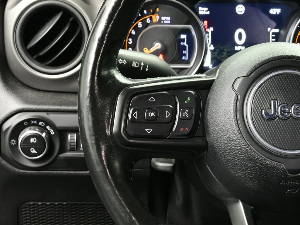Cold Weather Group: Remote Start System; Heated Front Seats; Heated Steering Wheel. Convenience Group: Remote Start System; Universal Garage Door Opener. Technology Group: Google Android Auto; USB Host Flip; Cluster 7.0" TFT Color Display; Integrated Center Stack Radio; 7.0" Touch Screen Display; Air Conditioning with Auto Temp Control; Integrated Voice Command with Bluetooth®; Uconnect 4 Radio with 7" Display; Apple CarPlay. Trailer Tow Package: Heavy Duty Engine Cooling; Trailer Hitch Zoom; Class IV Hitch Receiver; 240 Amp Alternator. Quick Order Package 24W Willys: Speed Sensitive Power Locks; Protection Sill Rails; Leather Wrapped Steering Wheel; 4-Wheel Drive Decal; Black Grille; MOPAR All-Weather Floor Mats; 2-Piece Body Color Fender Flares; Front 1-Touch Down Power Windows; Anti-Spin Differential Rear Axle; Front Heavy Duty Red Accent Shock Absorbers; Security Alarm; Willys; Mold in Color Bumper with Gloss Black; Automatic Headlamps; 17" X 7.5" Black Aluminum Wheels with Gray Pad; Deep Tint Sunscreen Windows; Black Trail Rated Badge; Willys Hood Decal; Rear Heavy Duty Red Accent Shock Absorbers; 97 Mph Maximum Speed Calibration; Power Heated Mirrors; Daytime Running Lamp System; Power Tailgate Lock; Bridgestone Brand Tires; Remote Keyless Entry; Sun Visors with Illuminated Vanity Mirrors. Roll-Up Tonneau Cover. SiriusXM Satellite Radio. Sarge Green Clearcoat. **Equipment listed is based on original vehicle build and subject to change. Please confirm the accuracy of the included equipment by calling the dealer prior to purchase.**