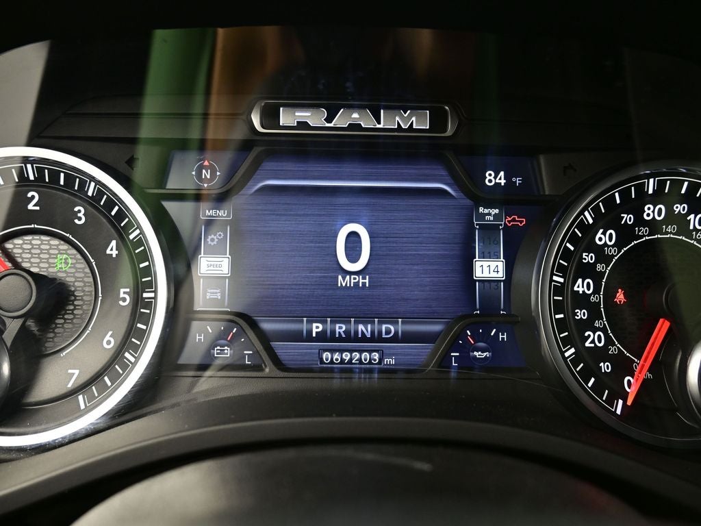 Quick Order Package 23Z Big Horn: Big Horn Badge. Big Horn Level B Equipment Group: Google Android Auto; SiriusXM Radio Service; Bluetooth® Handsfree Phone and Audio; USB Host Flip; Rear Window Defroster; Integrated Center Stack Radio; ParkSense Front/rear Park Assist with Stop; Rear View Auto Dim Mirror; Power Adjustable Pedals; For More Info. Call 800-643-2112; Rear Power Sliding Window; Rear Dome with On/off Switch Lamp; Connectivity - US/Canada; Glove Box Lamp; 4G LTE Wi-Fi Hot Spot; 115V Auxiliary Rear Power Outlet; Media Hub with 2 Charge Only USBs; Power 8-Way Driver Seat; Auto Dim Exterior Driver Mirror; Heated Front Seats; Uconnect 5 W Radio with 8.4" Display; Heated Steering Wheel; 8.4" Touchscreen Display; Foam Bottle Insert (door Trim Panel); Class IV Receiver Hitch; Security Alarm; Apple CarPlay; Big Horn Instrument Panel Badge; Black Premium Power Mirrors; Remote Start System; SiriusXM Satellite Radio; Exterior Mirrors with Supplemental Signals; Exterior Mirrors Courtesy Lamps; Air Conditioning ATC with Dual Zone Control; 115V Auxiliary Power Outlet; Cluster 7.0" TFT Color Display; Universal Garage Door Opener; Sun Visors with Illuminated Vanity Mirrors; Power 2-Way Driver Lumbar Adjust. Deluxe Cloth Bucket Seats. ParkSense Front/rear Park Assist with Stop. 115V Auxiliary Power Outlet. Remote Start System. Cluster 7.0" TFT Color Display. **Equipment listed is based on original vehicle build and subject to change. Please confirm the accuracy of the included equipment by calling the dealer prior to purchase.**