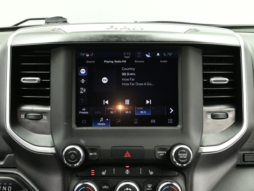 - Call 800-643-2112; Power Adjustable Pedals; Rear Power Sliding Window; Rear Dome with On/off Switch Lamp; Connectivity - US/Canada; Glove Box Lamp; 4G LTE Wi-Fi Hot Spot; 115V Auxiliary Rear Power Outlet; Media Hub with 2 Charge Only USBs; Power 8-Way Driver Seat; Auto Dim Exterior Driver Mirror; Rear Underseat Compartment Storage; Heated Front Seats; Uconnect 5 W Radio with 8.4" Display; Heated Steering Wheel; 8.4" Touchscreen Display; Foam Bottle Insert (door Trim Panel); Class IV Receiver Hitch; Security Alarm; Apple CarPlay; Big Horn Instrument Panel Badge; Black Premium Power Mirrors; Remote Start System; SiriusXM Satellite Radio; Exterior Mirrors with Supplemental Signals; Exterior Mirrors Courtesy Lamps; Air Conditioning ATC with Dual Zone Control; 115V Auxiliary Power Outlet; Cluster 7.0" TFT Color Display; Universal Garage Door Opener; 2nd Row in Floor Storage Bins; Sun Visors with Illuminated Vanity Mirrors; Power 2-Way Driver Lumbar Adjust